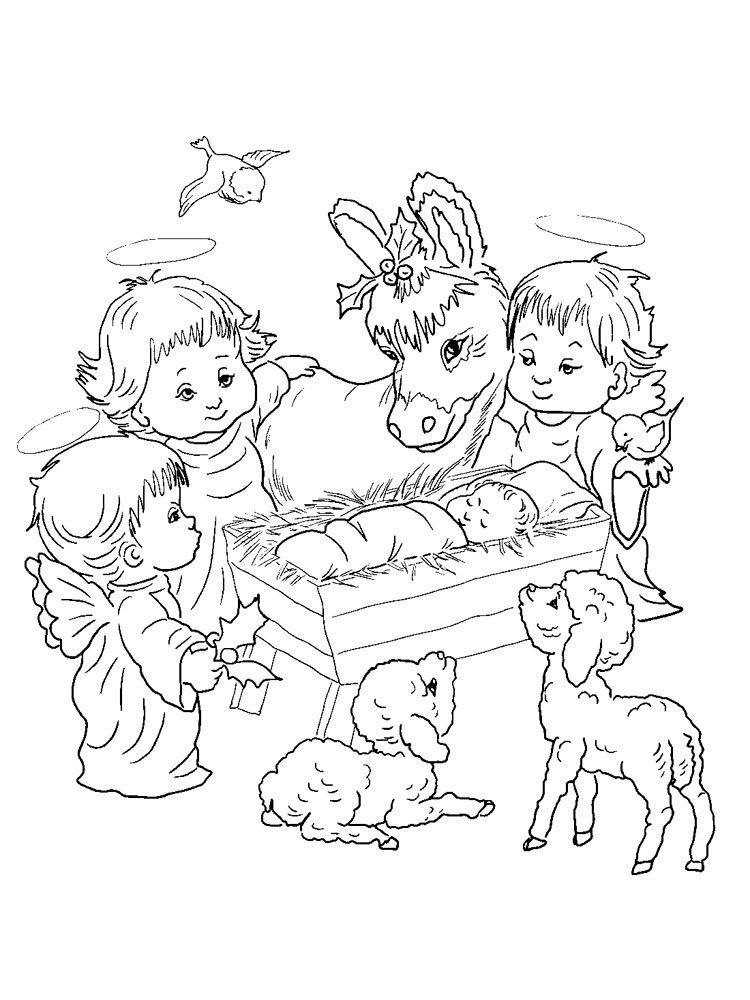 ![Мария, Иосиф и младенец в вертепе раскраска]()