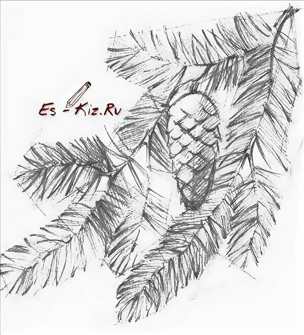 ![Еловая ветка карандашом]()