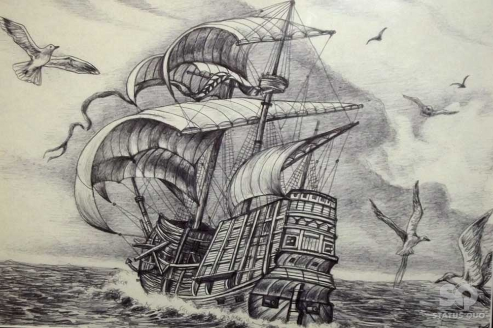 ![Карандашный набросок корабля]()