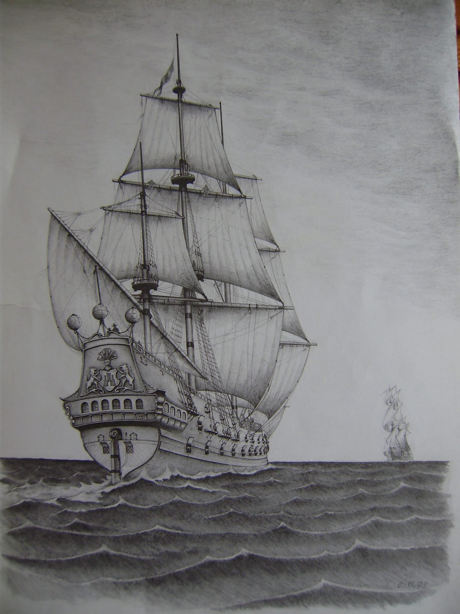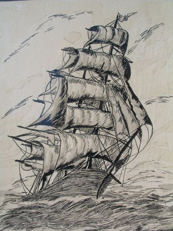 ![Парусный корабль карандашом]()