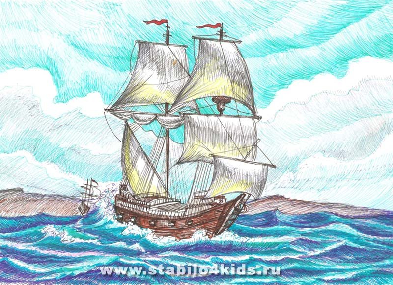 Представьте себе потрясающий рисунок, на котором изображен корабль, плывущий по бескрайнему морю. Используя только карандаш, художник воплощает перед нами всю мощь и красоту этого морского судна. Каждая деталь аккуратно прорисована, от оков до парусов, создавая ощущение реалистичности и движения. Отражение корабля на волнующейся поверхности моря добавляет особую грацию и загадочность этому произведению искусства. Этот рисунок заставит каждого зрителя замереть в восхищении перед мастерством автора и воссозданным им морским путешествием на бумаге.