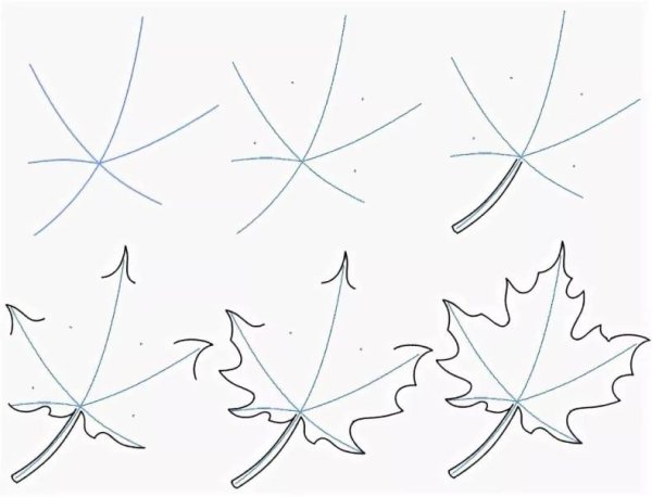 Поэтапный рисунок листа клена
