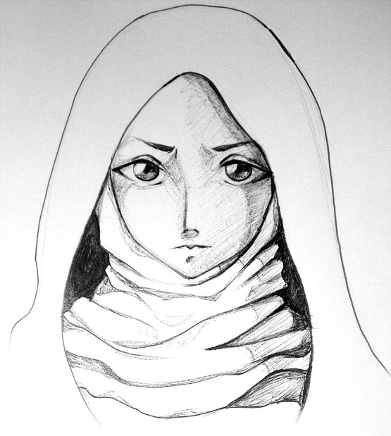 ![Портрет мусульманки карандашом]()