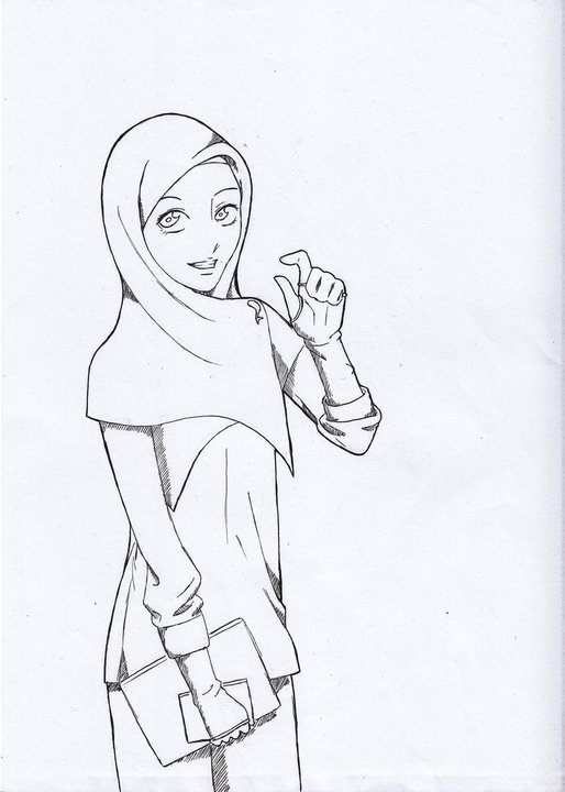 ![Девушки в хиджабе скетч]()