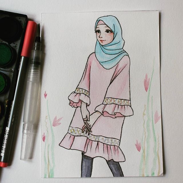 ![Девушка в хиджабе рисунок]()