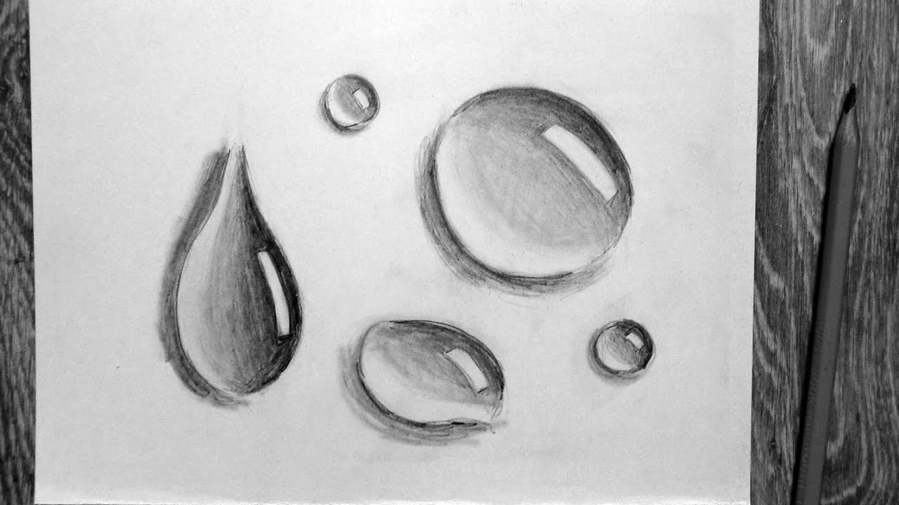 ![Капли воды карандашом]()