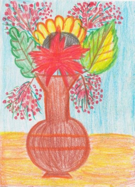![Цветы в вазе рисунок]()