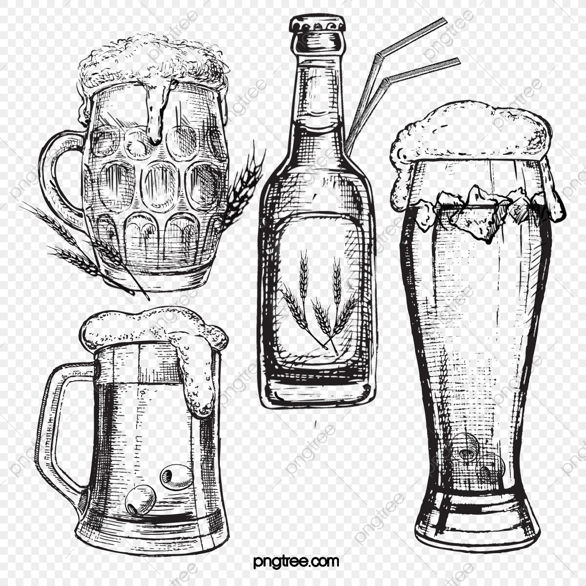 ![Кружка пива черно белая]()