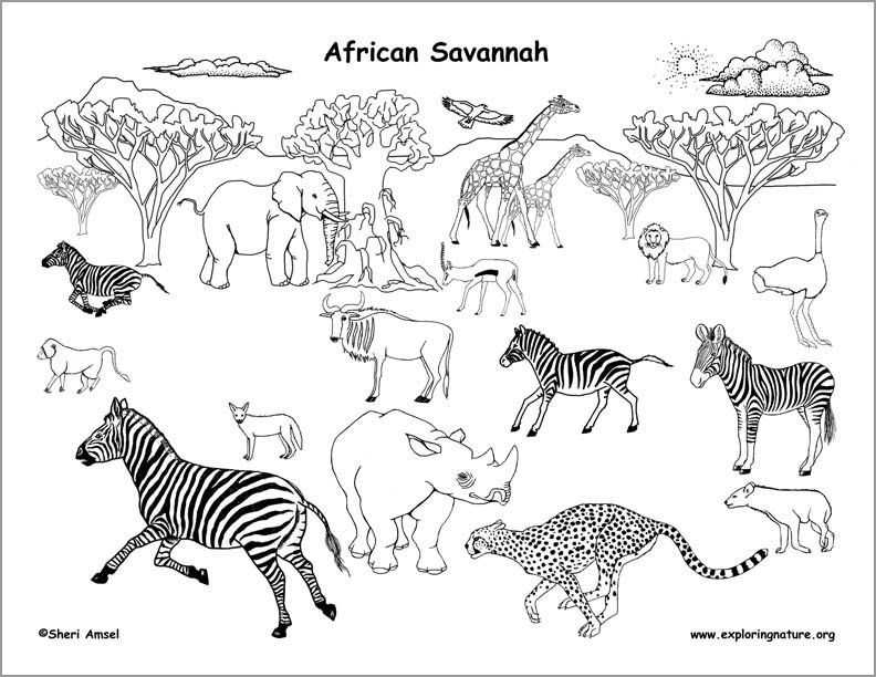 ![Саванна раскраска]()