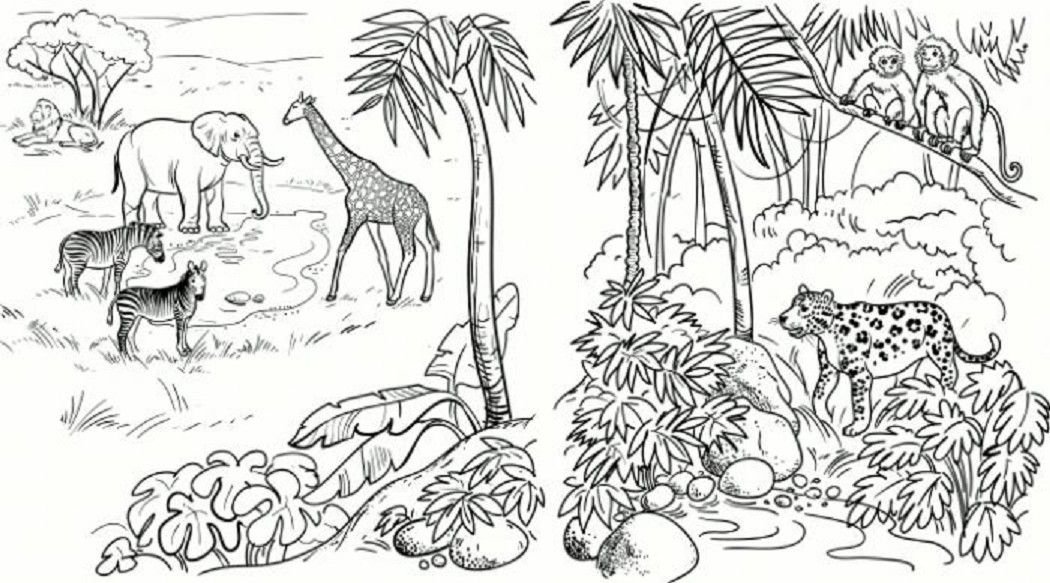 ![Саванна раскраска для детей]()