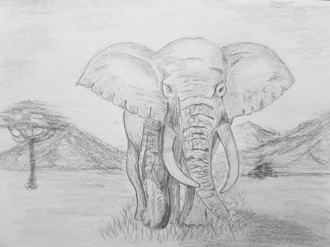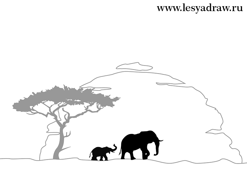 ![Слон в саванне рисунок]()