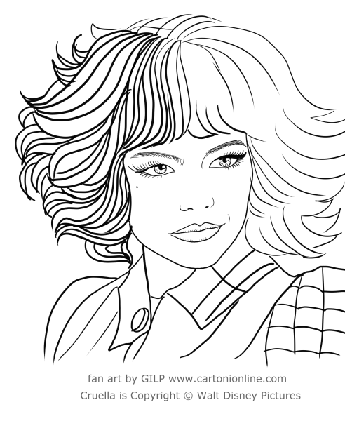 ![Скетч Круэлла Девиль Эмма Стоун]()