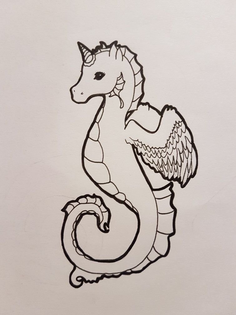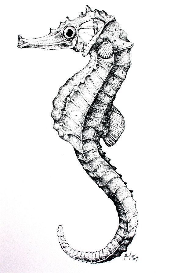 ![Морской конек эскиз]()