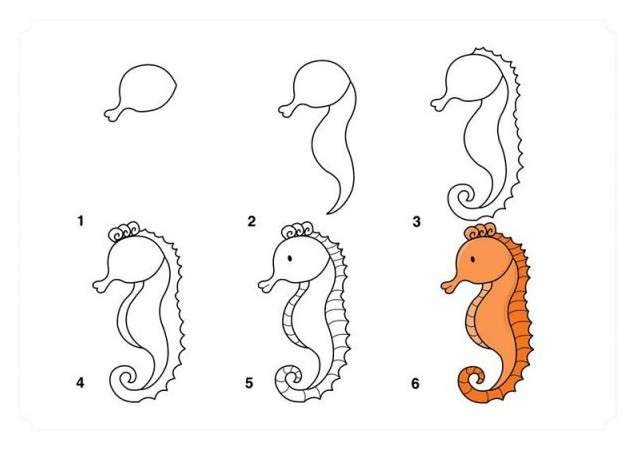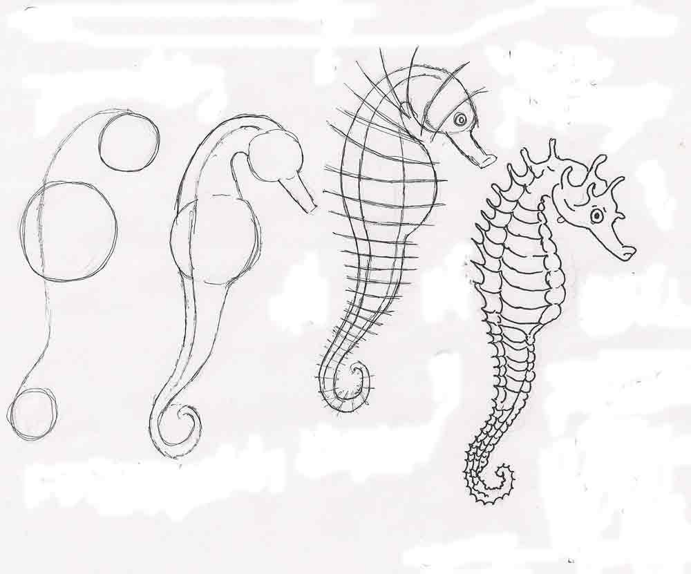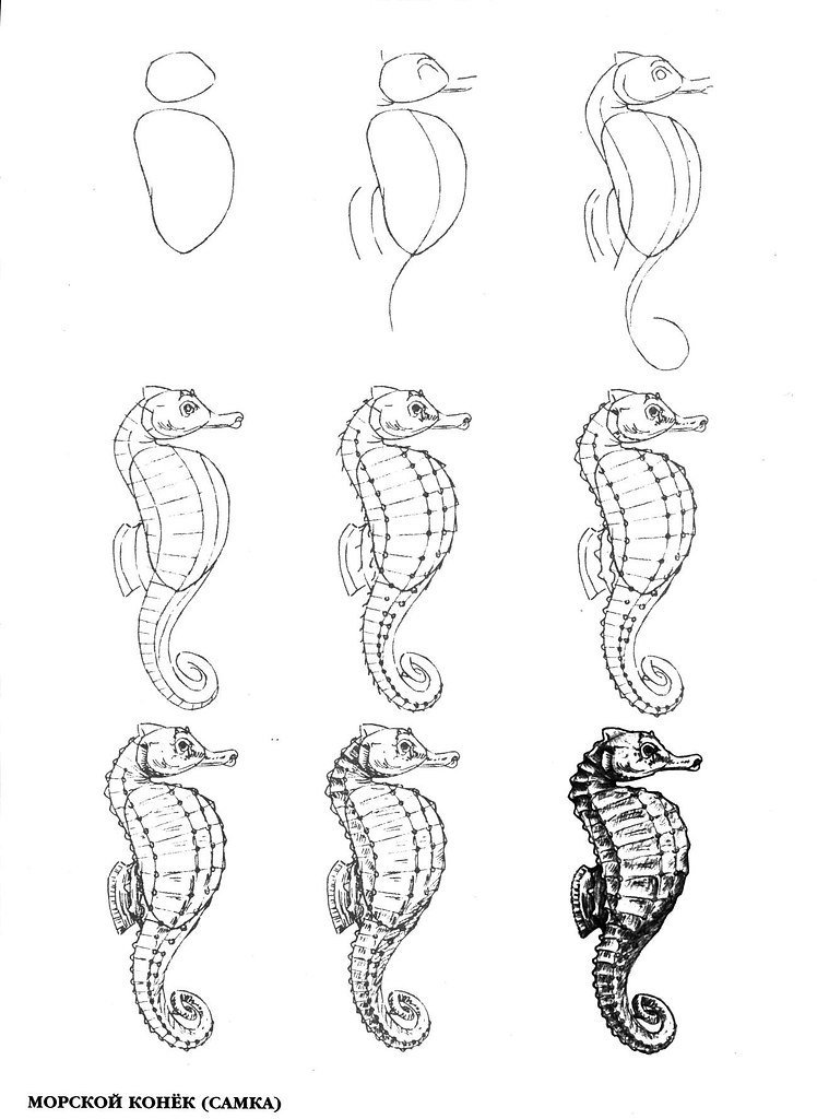 Поэтапное рисование морского конька
