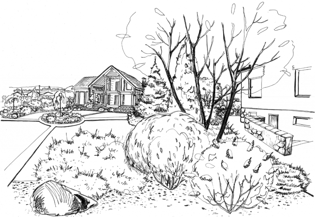 ![Ландшафт двора карандашом]()