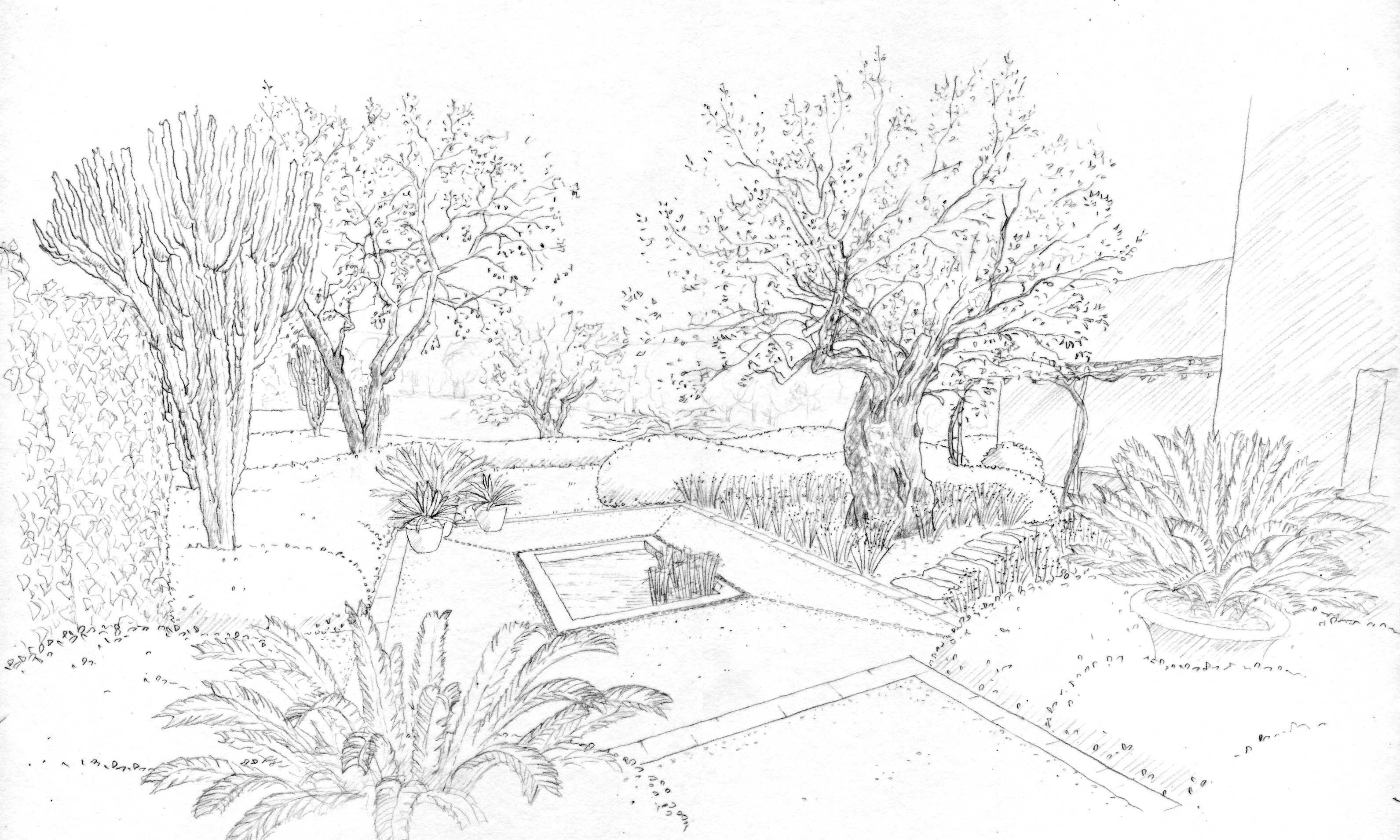 Эскиз сада карандашом