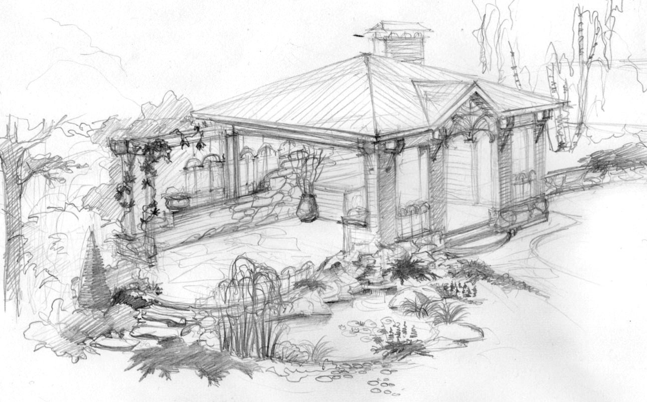 ![Эскиз сада карандашом]()