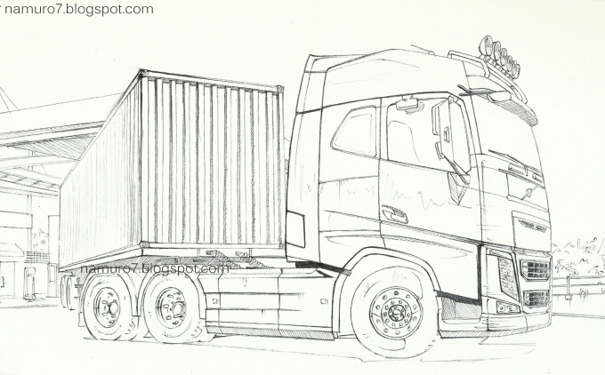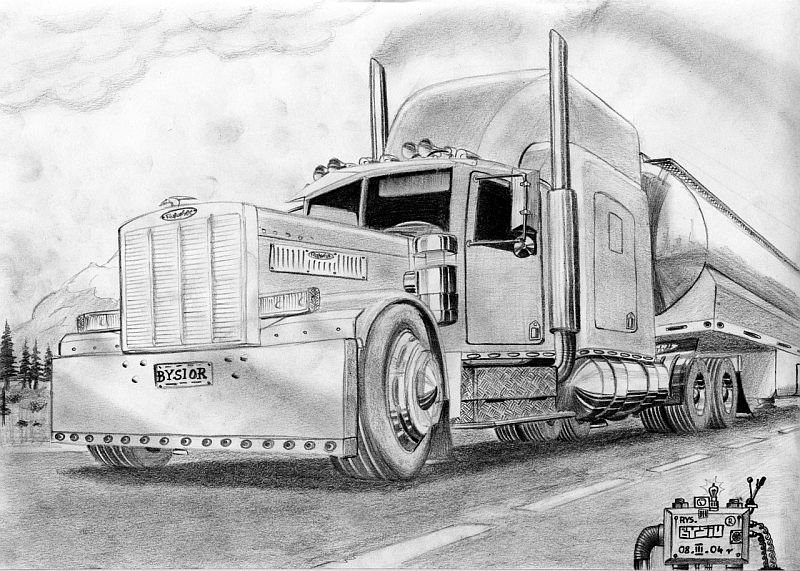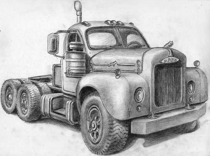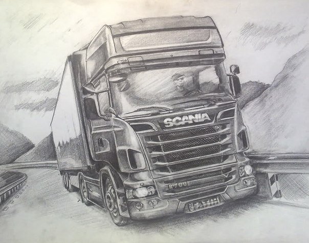 ![КАМАЗ сбоку рисунок карандашом легкий]()