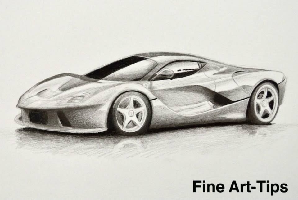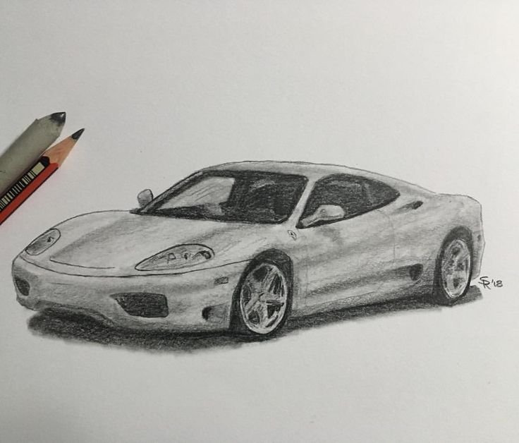 ![Машина Феррари рисунок карандашом]()