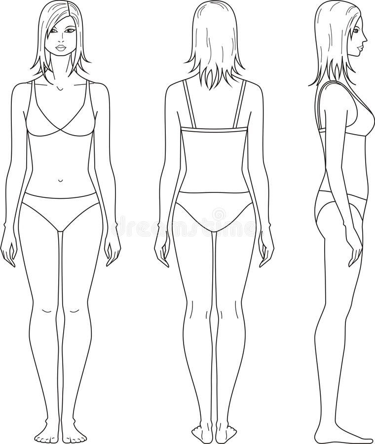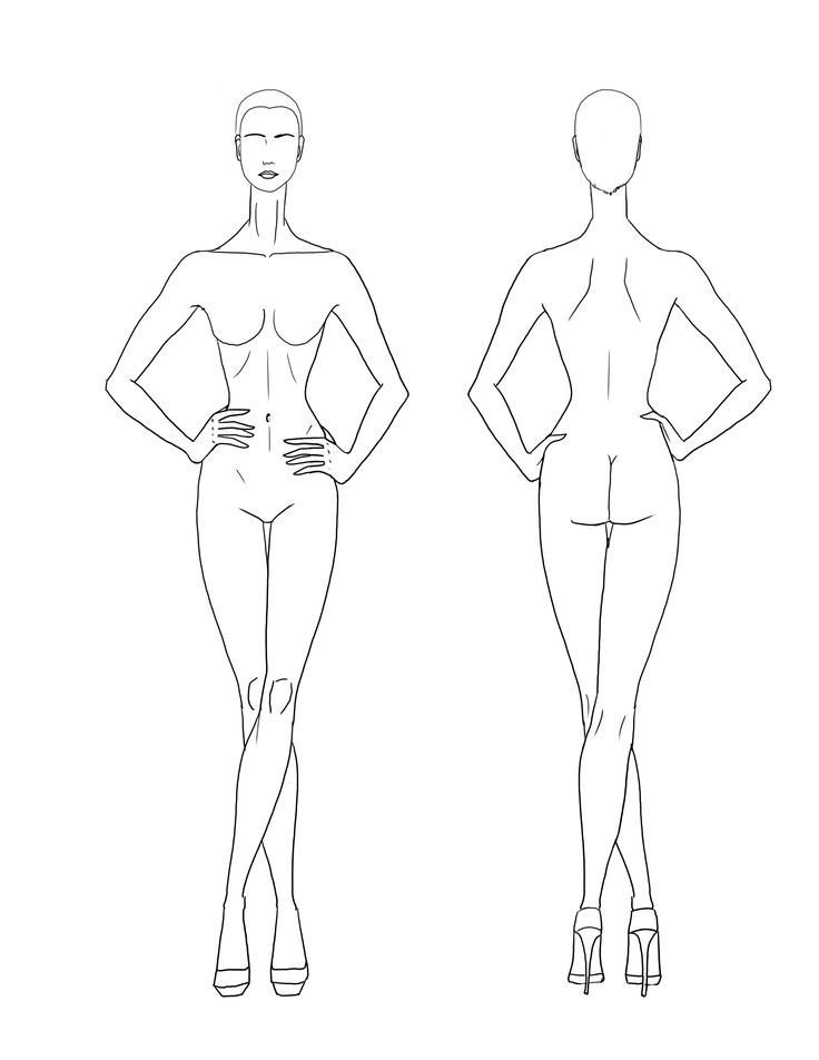 ![Эскиз женской фигуры спереди и сзади]()