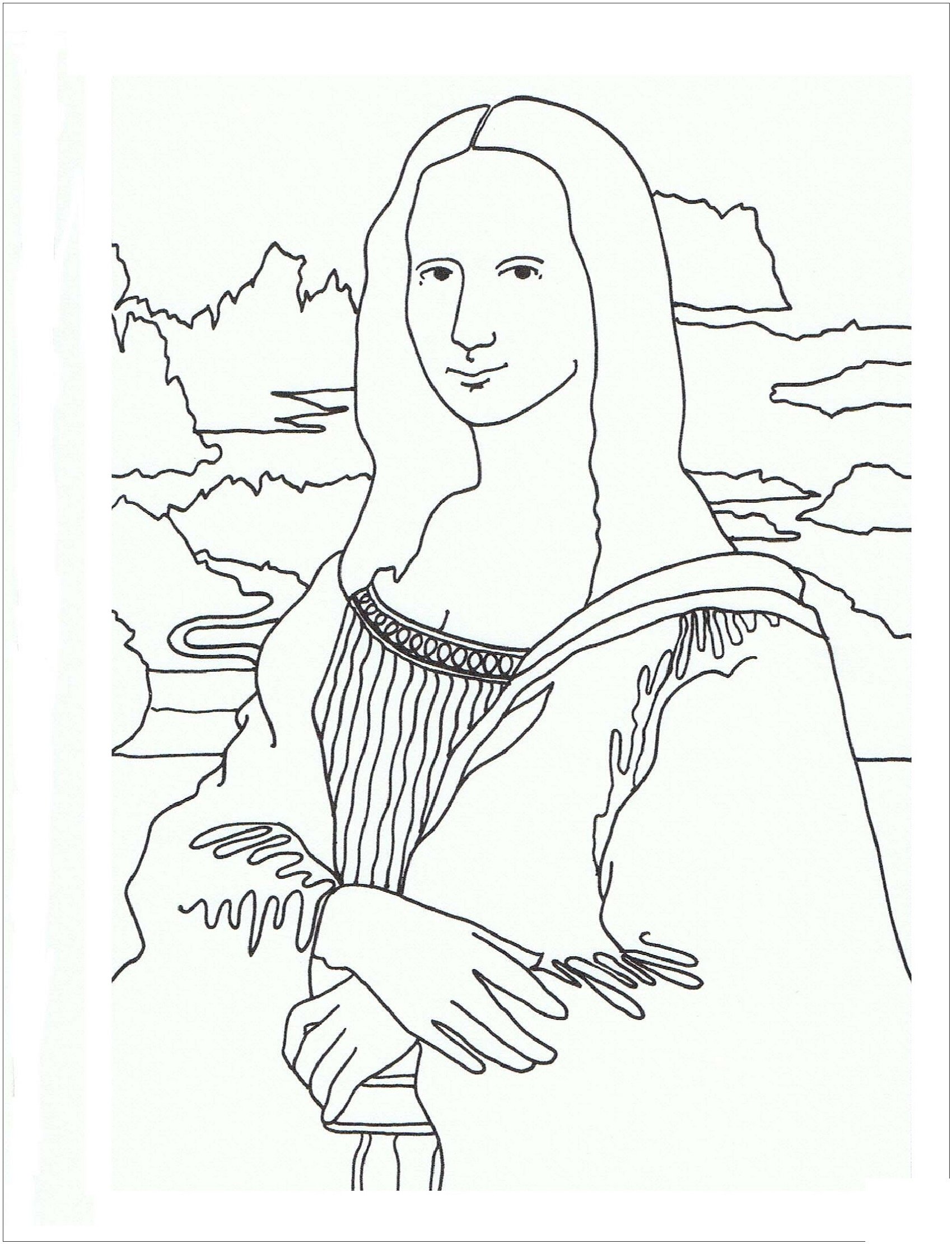 ![Раскраски картины Леонардо да Винчи Мона Лиза]()