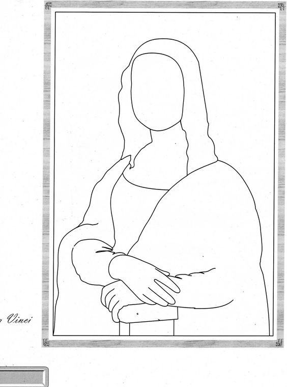 ![Мона Лиза картина раскраска]()