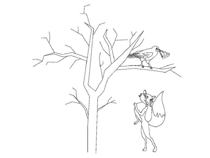 ![Иллюстрация к басне ворона и лисица карандашом]()
