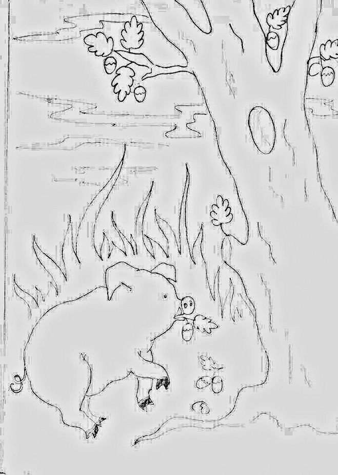 ![Иллюстрация к басне Крылова свинья под дубом]()