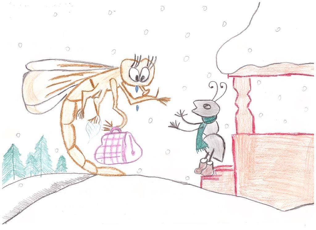 Иллюстрирование Крылов басни Стрекоза и муравей
