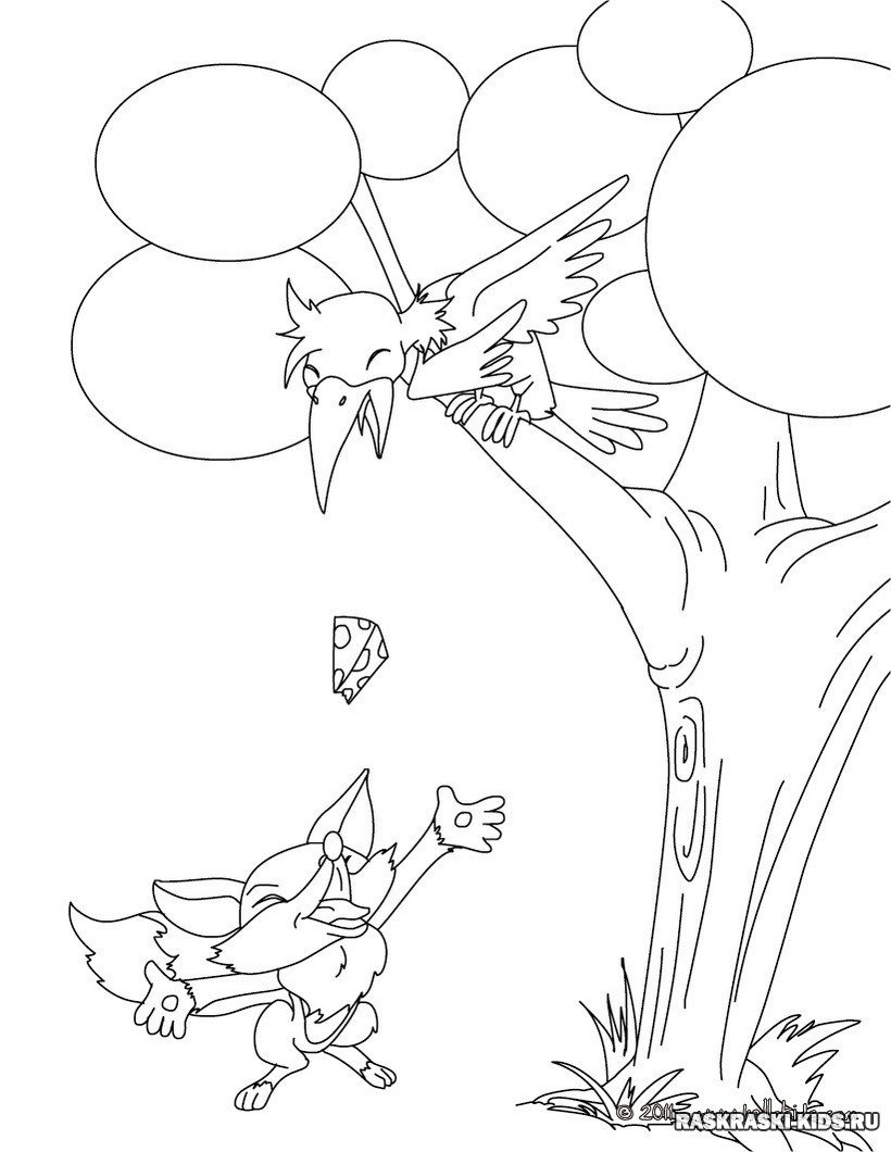 Иллюстрации к басням Крылова раскраски ворона и лисица