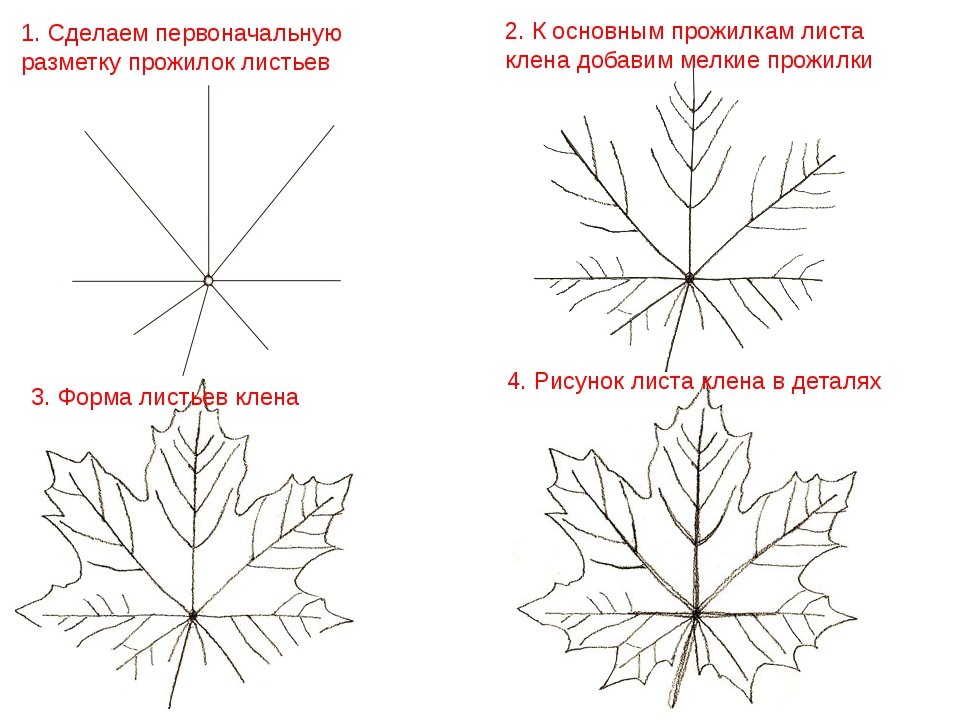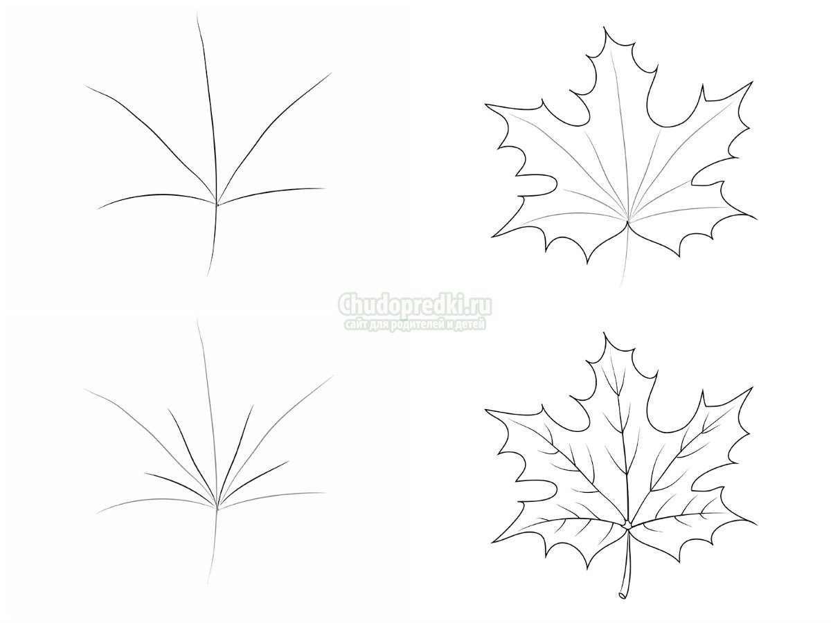 ![Нарисовать кленовый лист карандашом поэтапно]()
