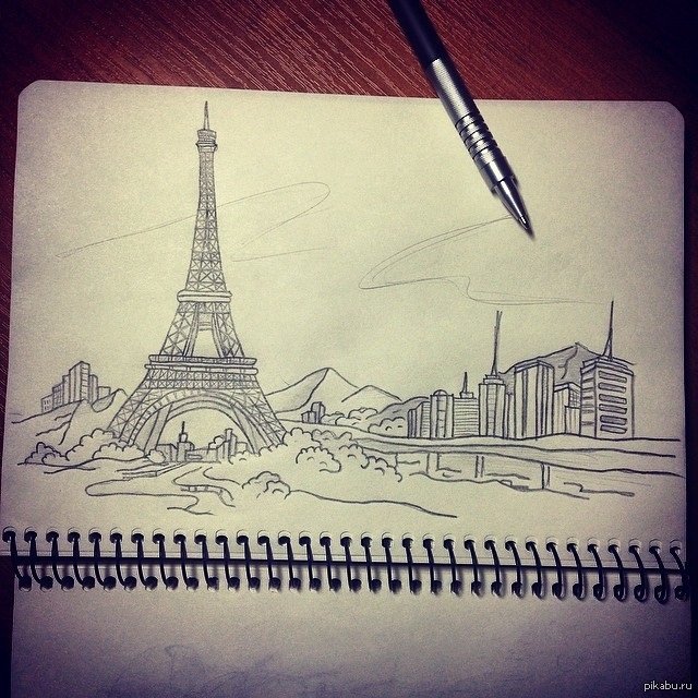 ![Нарисовать Париж карандашом]()