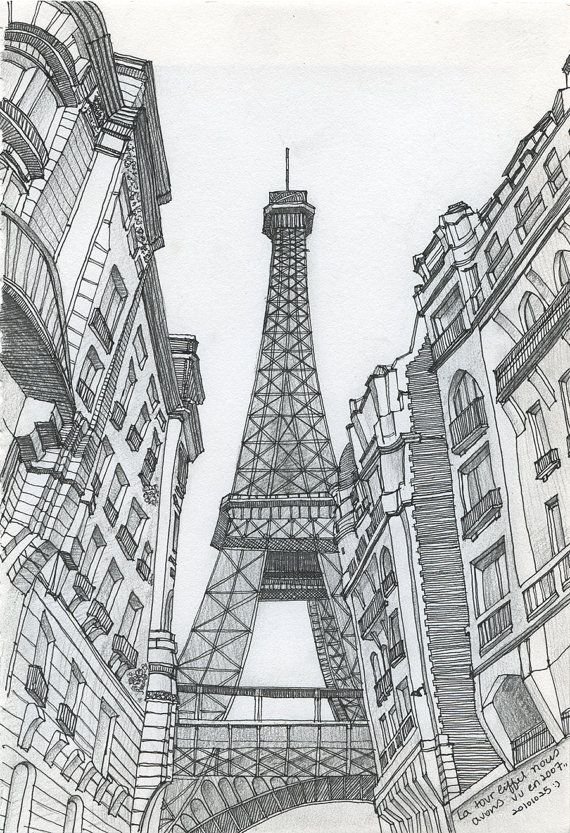 Париж рисунок простым карандашом
