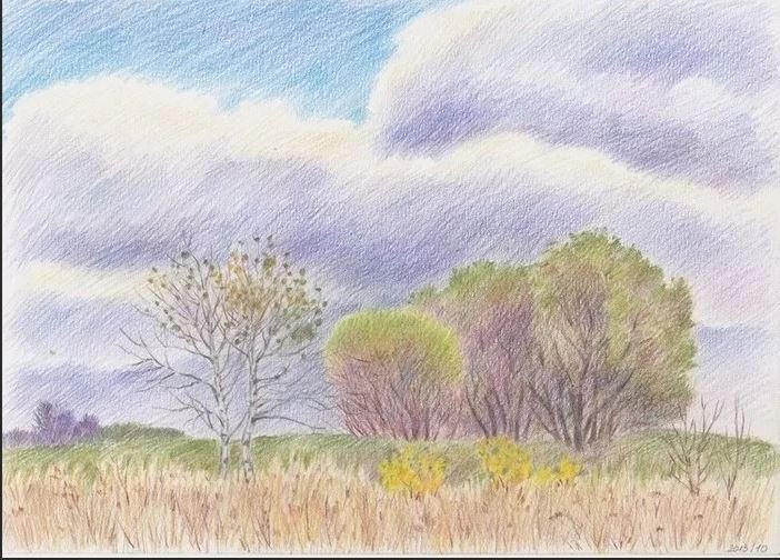 Облака рисунок карандашом цветным