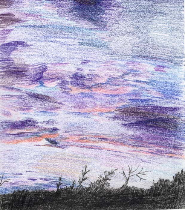 Рисуем небо цветными карандашами