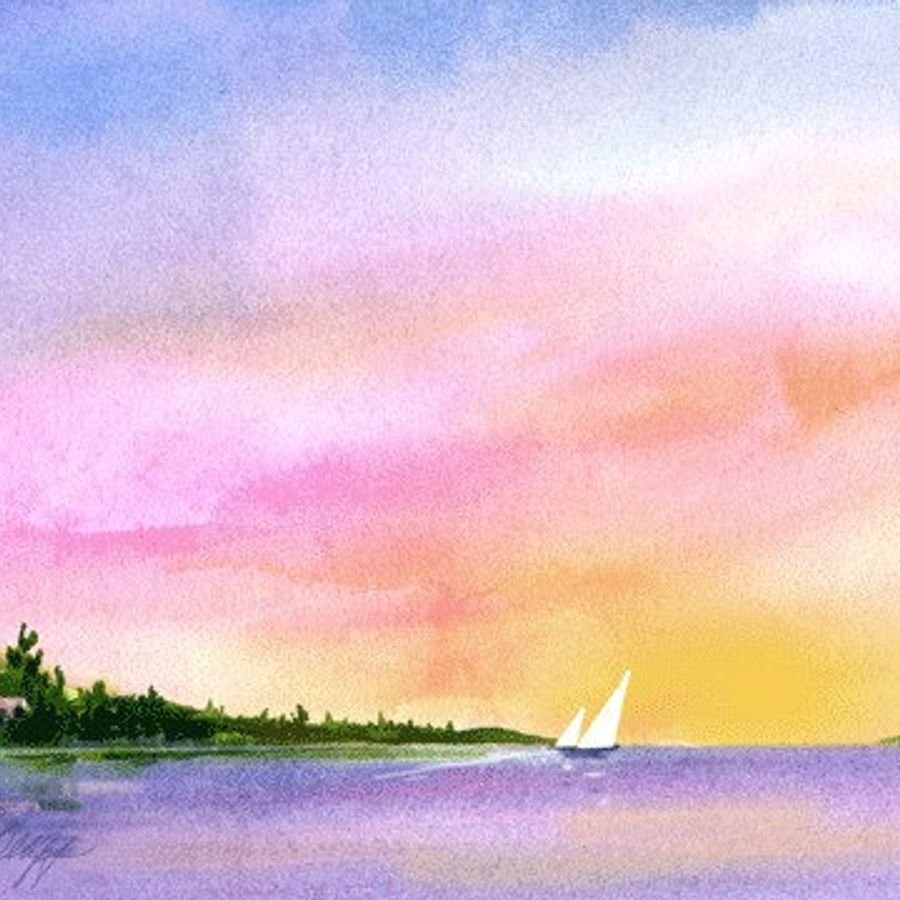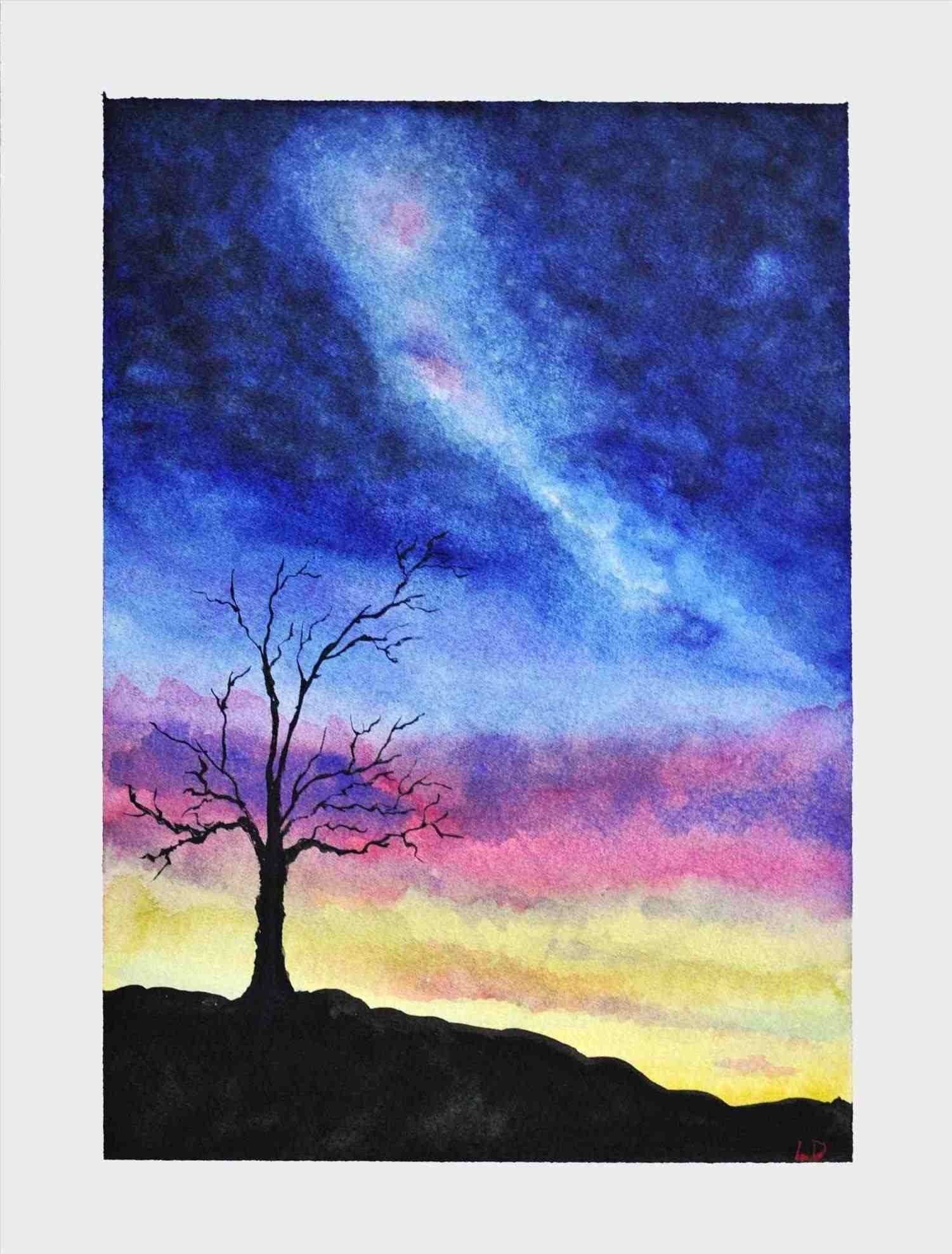 Небо красками акварель легко