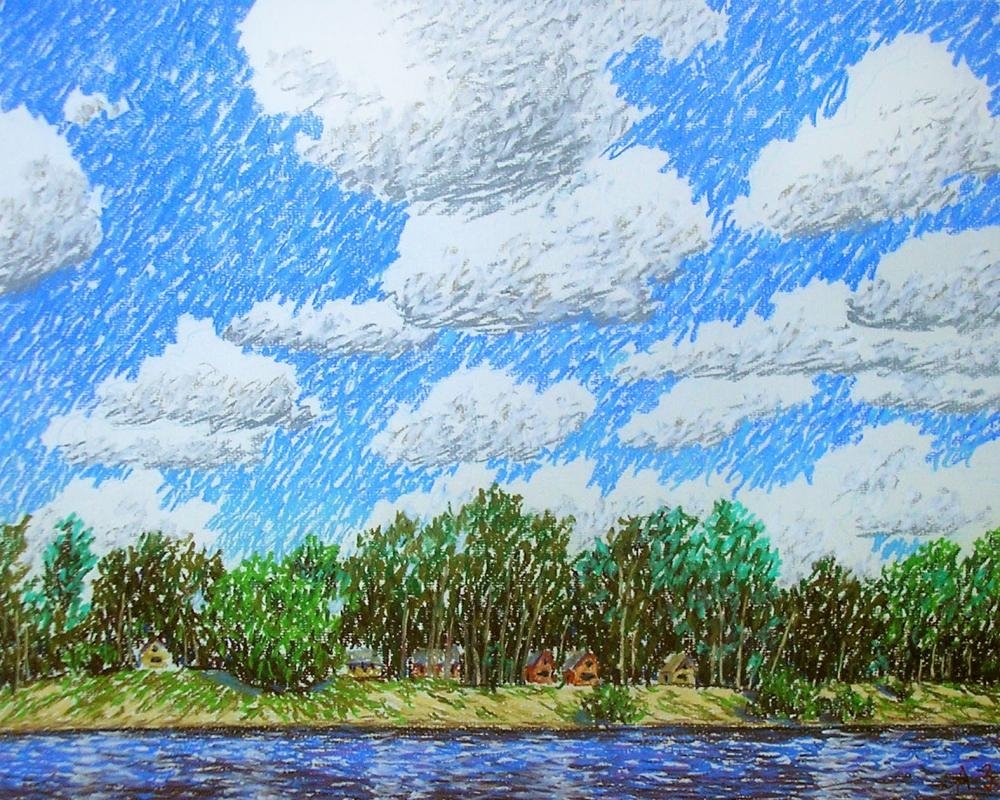 Облака цветными карандашами