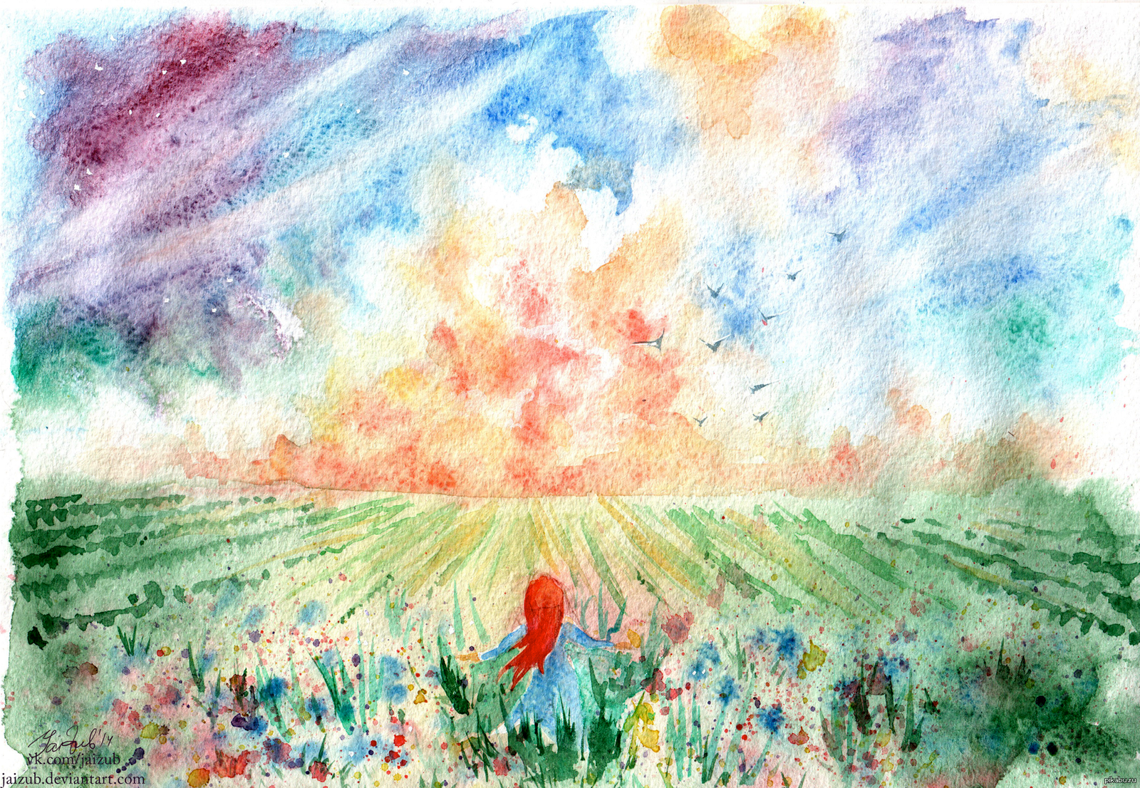 ![Пейзаж с радугой акварелью]()