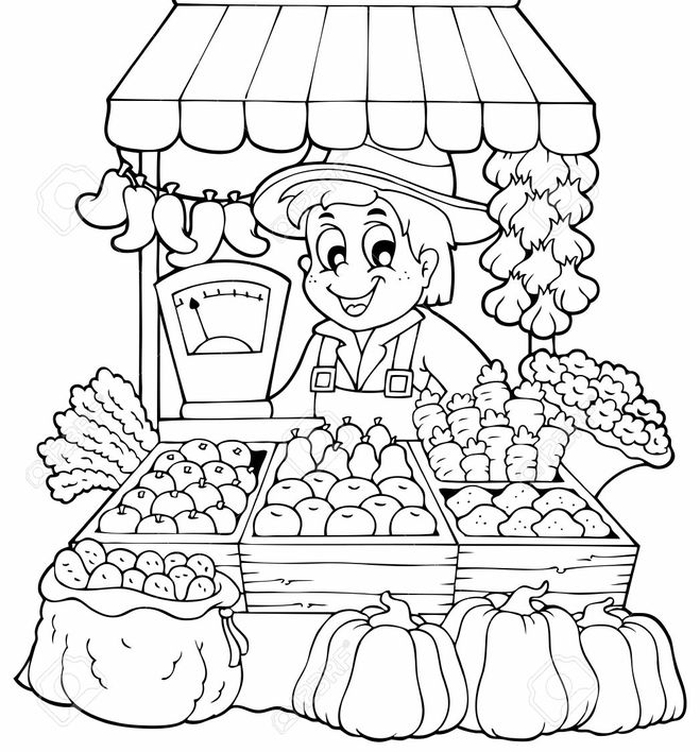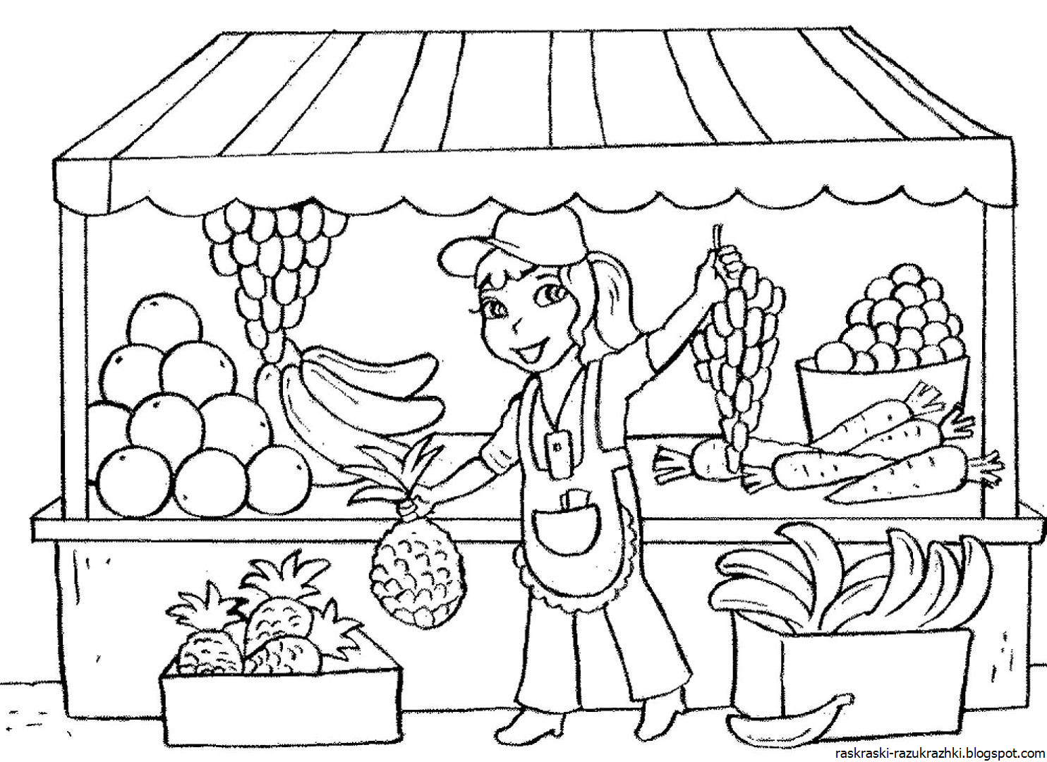![Раскраска овощной магазин для детей]()