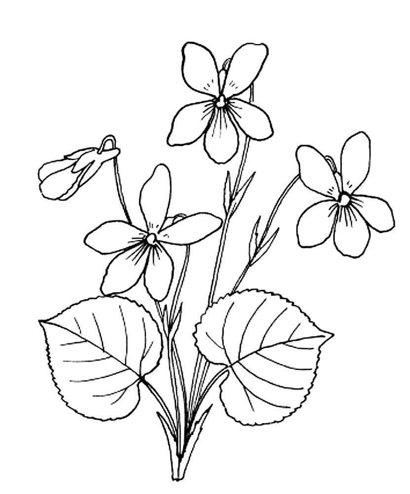 Фиалка раскраска для детей