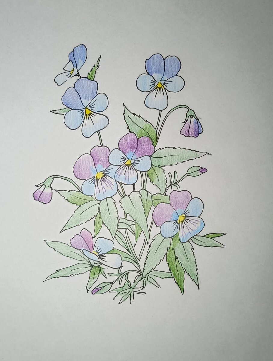 ![Анютины глазки рисунок карандашом]()