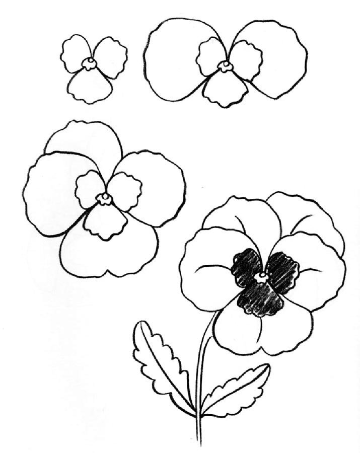 Анютины глазки рисунок карандашом