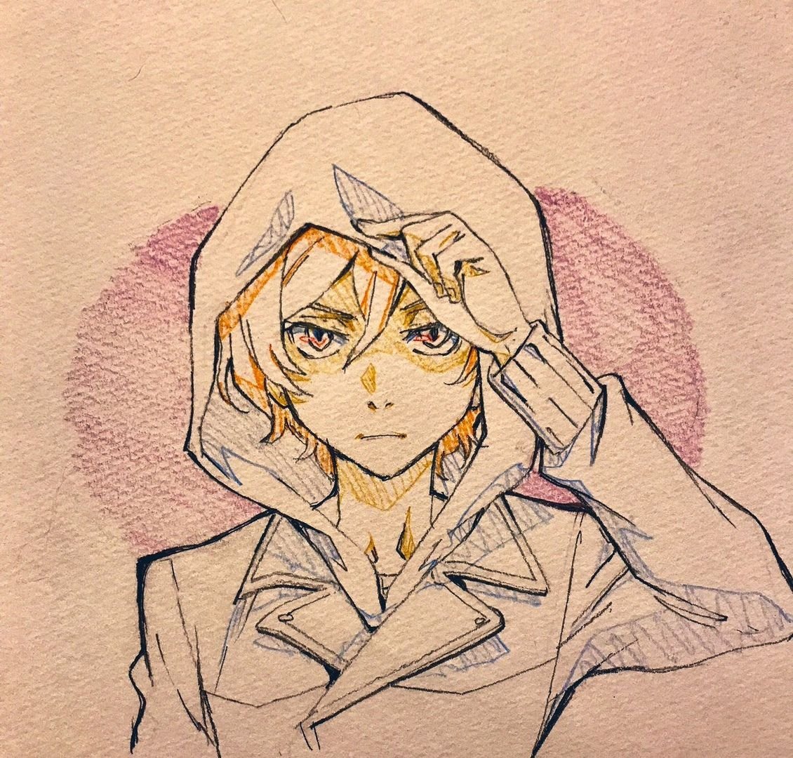 ![Чуя Накахара Великий из бродячих псов карандашом]()