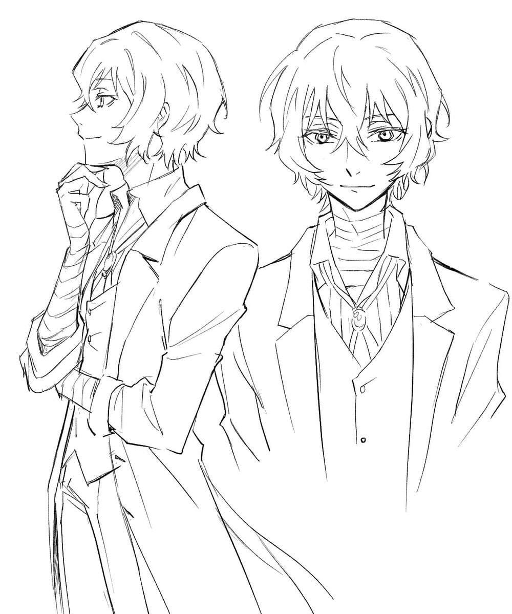 Аниме бродячие псы Дадзай раскраска