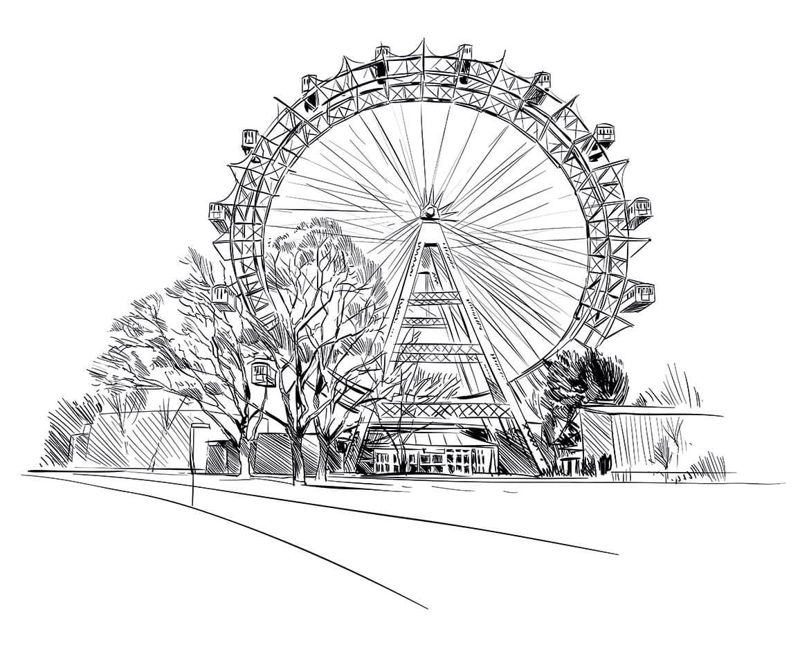 Колесо обозрения - это уникальная аттракционная конструкция, которая позволяет людям наслаждаться великолепными видами города, при этом создавая незабываемые впечатления. Рисунок колеса обозрения карандашом - это один из способов запечатлеть эту красоту и магию. Художник с помощью своего таланта и мастерства передает на бумаге все детали и причуды этой впечатляющей аттракции - от каждого шпиля до настроения и эмоций посетителей. В результате получается потрясающий рисунок, который захватывает взгляд и позволяет ощутить всю мощь и величие колеса обозрения.