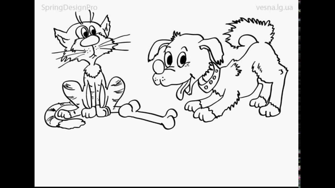 Рисунок кошки и собаки карандашом для срисовки