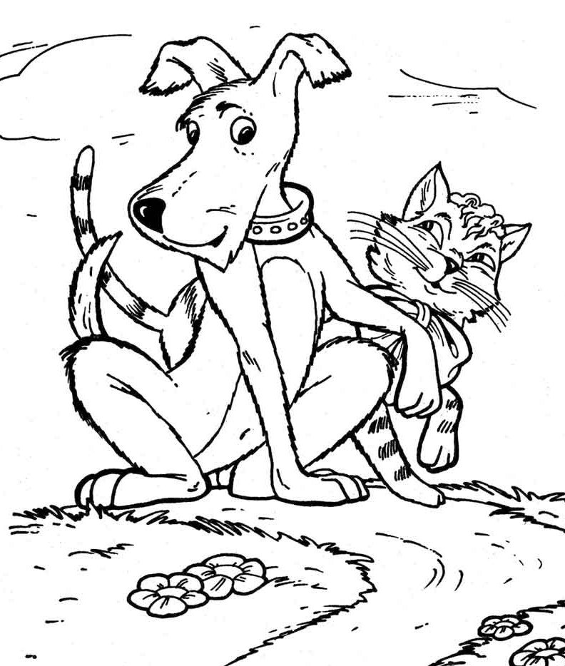 ![Раскраска. Кот и пес]()