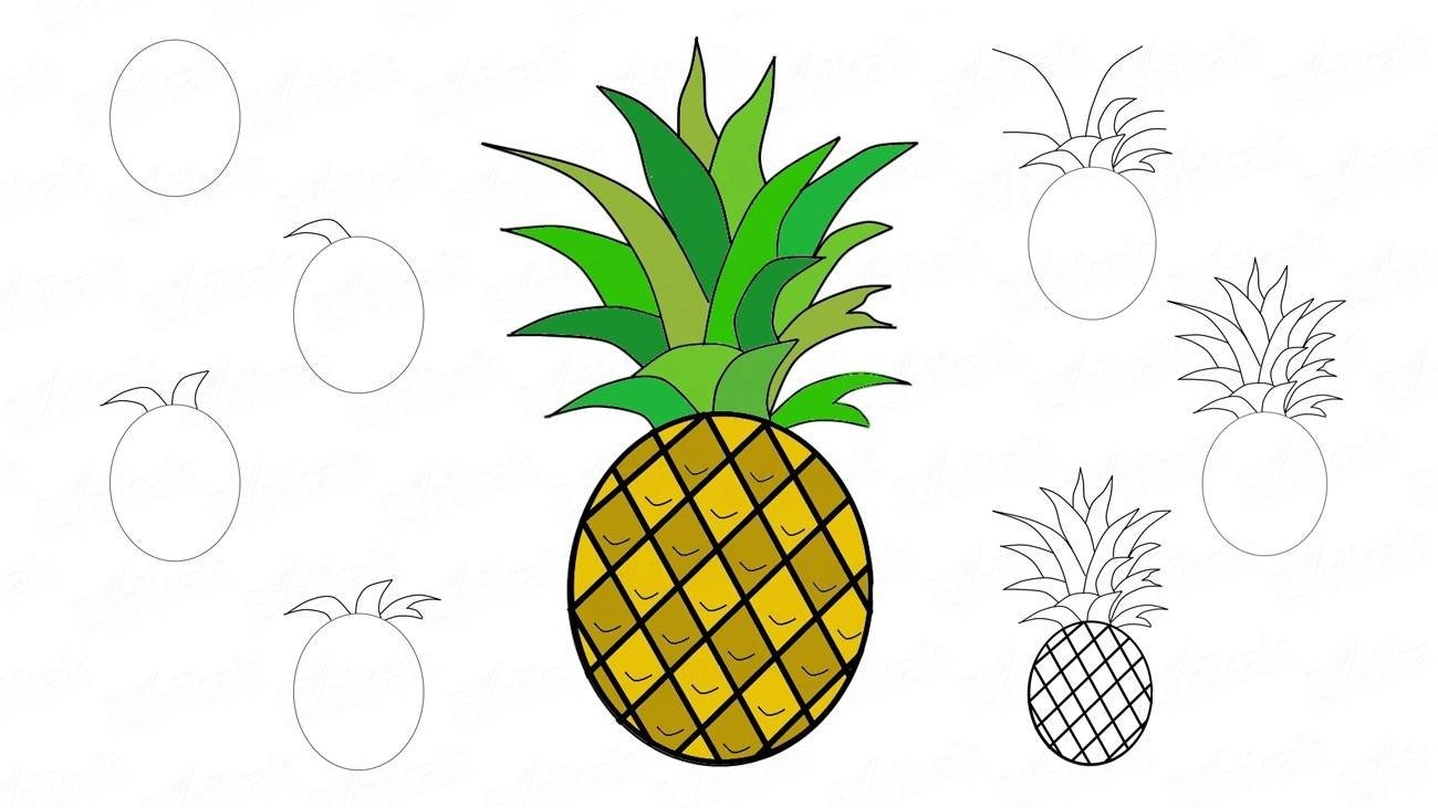 Ананас рисунок для детей карандашом (46 фото)