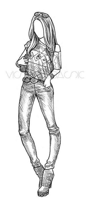 Зарисовка девушки в полный рост