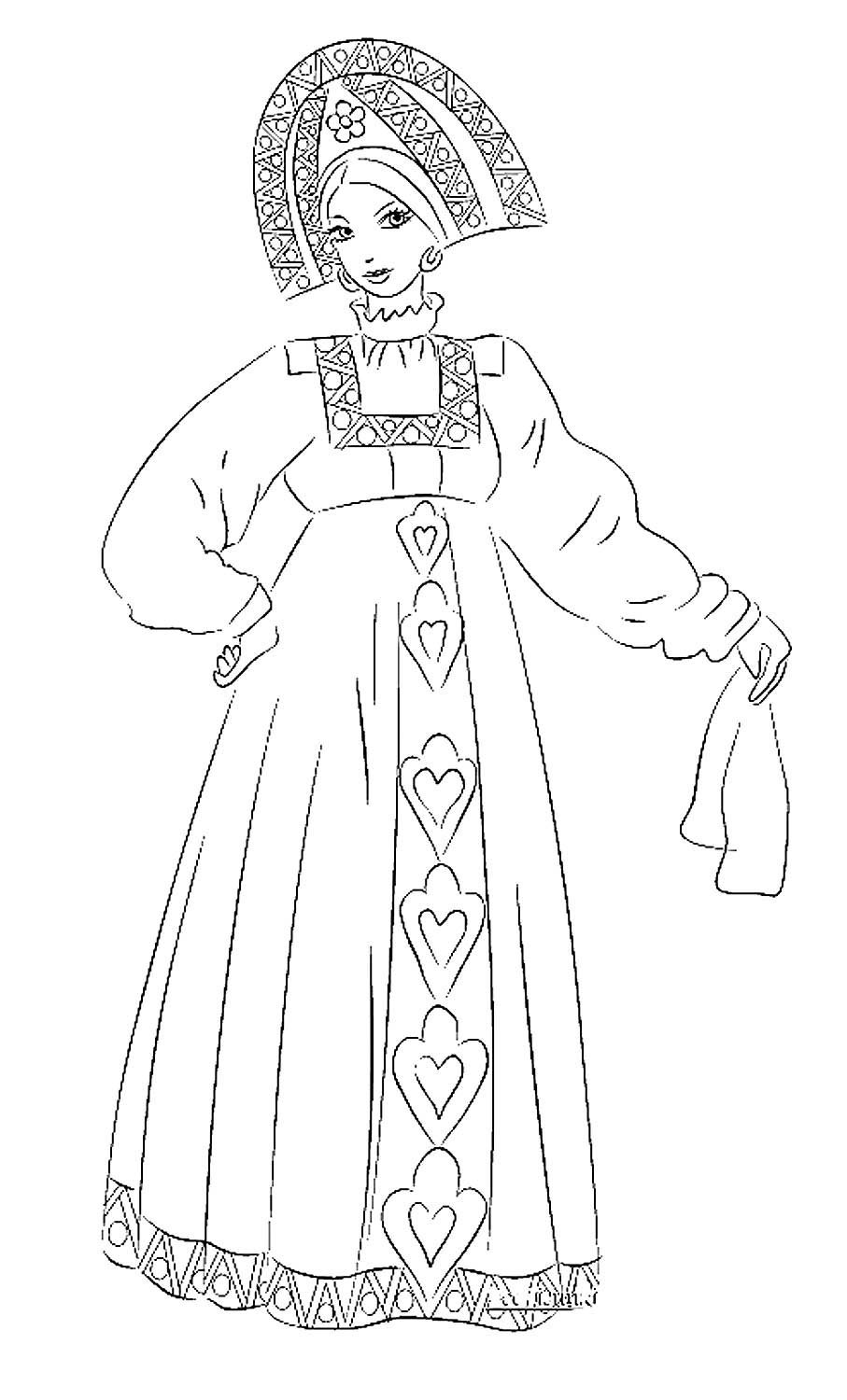 Русский народный костюм раскраска